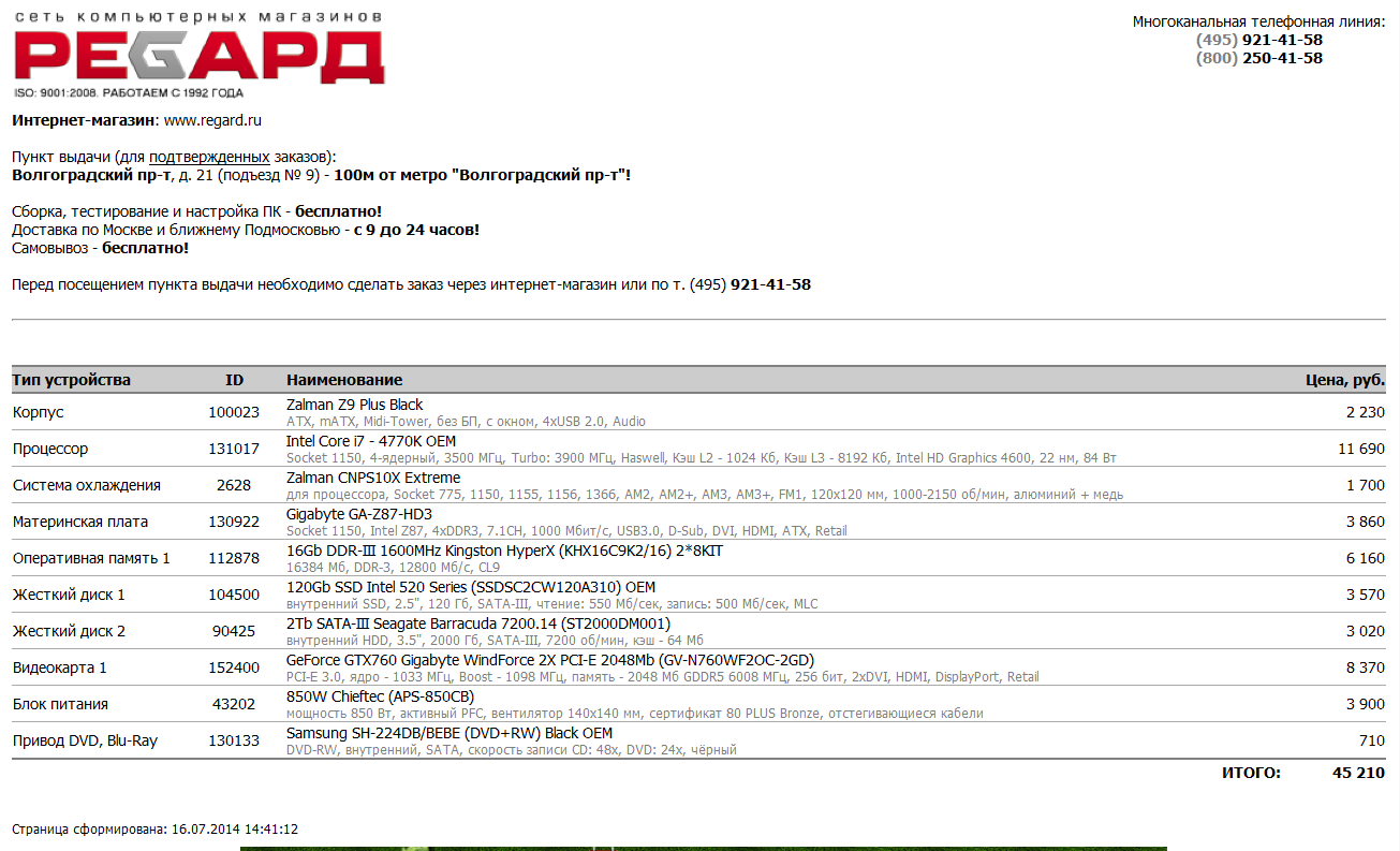 Материнская плата: MSI Z87-G45 GAMING - 5 131 руб  - тут соглашусь, посмотри есть неплохие мамки у гигабайта (асус не бери)